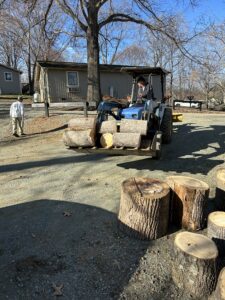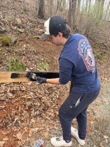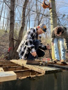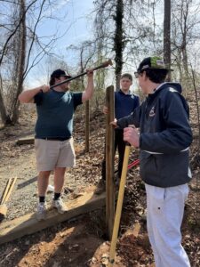 The Ability Experience brought helpers and momentum. Brothers built and painted handrails connecting key areas, including one leading up to the large main cabin from the dining hall, and another from the waterfront trail to the dining hall. They also replaced a zip line landing pad and painted its new base. In the true spirit of camp, they also cut and moved firewood for the campfire pit and hauled old wood to a burn pile. Not the most glamorous work, but some of the most impactful.